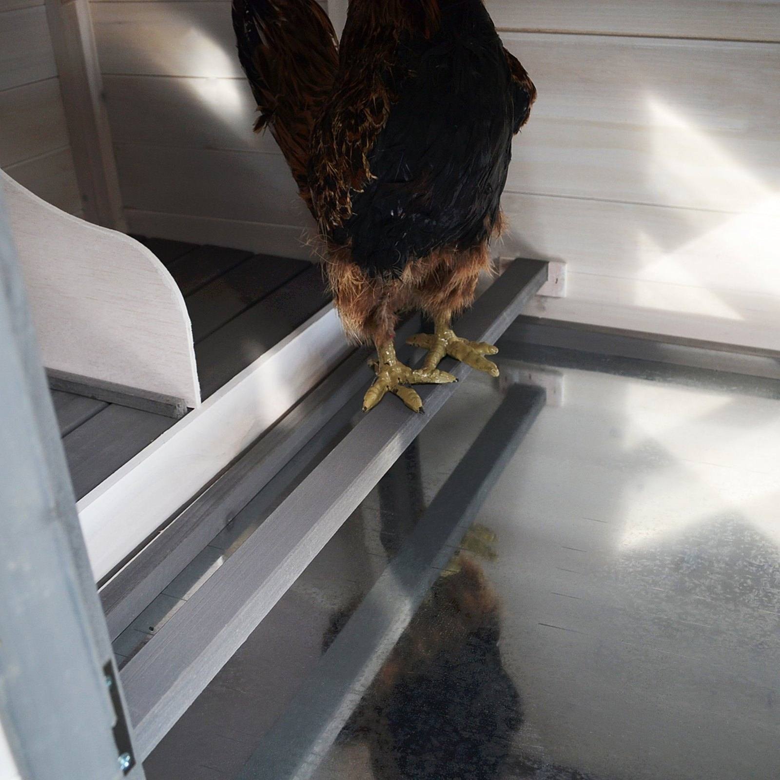 Give your chickens the freedom and comfort they crave plus the safety and security they need with PawHut Wooden Chicken Coop. Features coop, nesting box and outdoor run, giving your chicken room to roam, a place to roost and fresh outdoor air when they want. Start with the water-resistant roof in green asphalt composite material and work your way down to bottom pan which slides out easily to remove for cleaning. Security features include lockable sliding metal bolt doors and a premium galvanized wire run to protect animals from predators. Do more than just house your animals, provide them with the resources and opportunities!