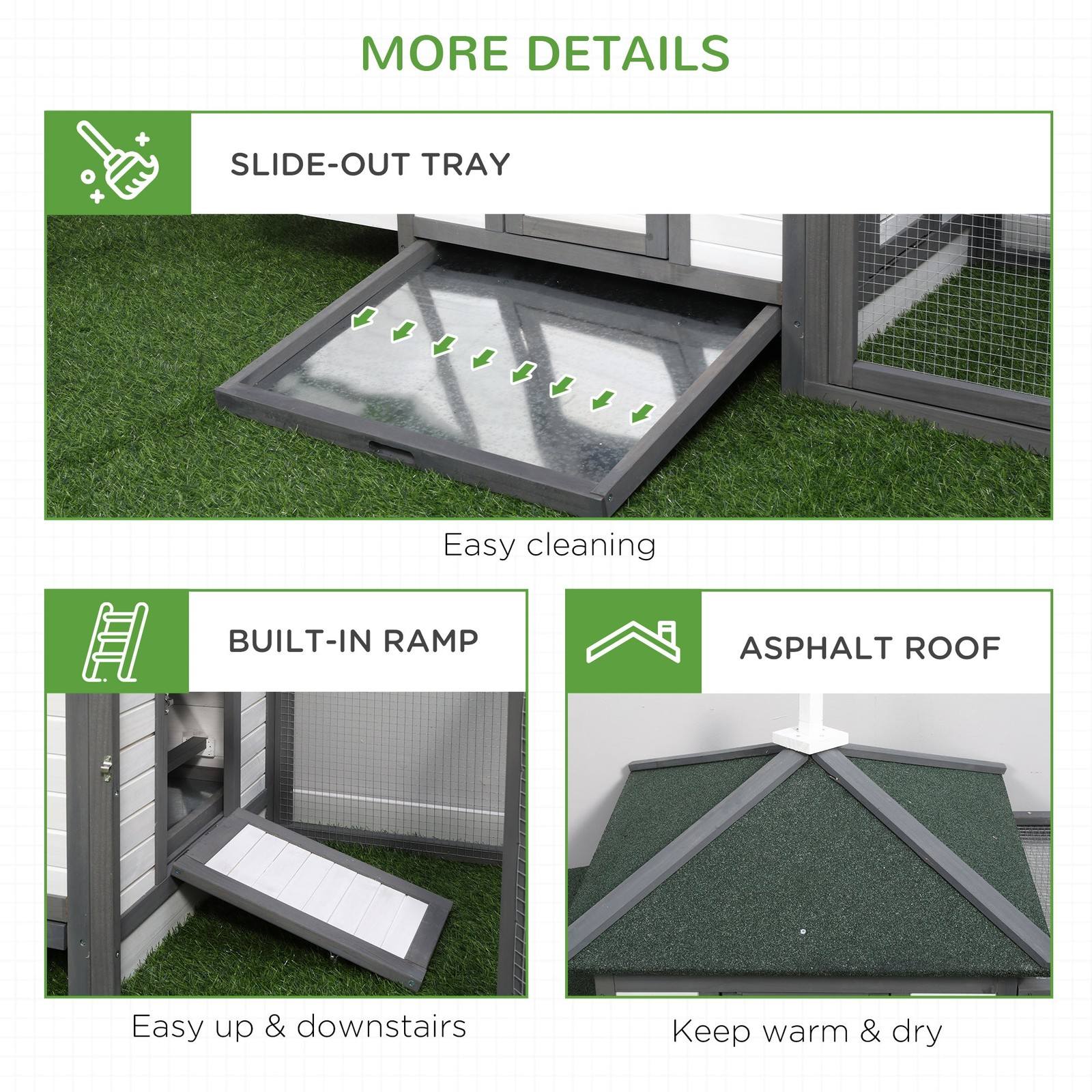 PawHut Chicken Coop with Run Hen House Poultry Coops Cages Pen Outdoor Backyard with Nesting Box 196 x 76 x 97cm Grey