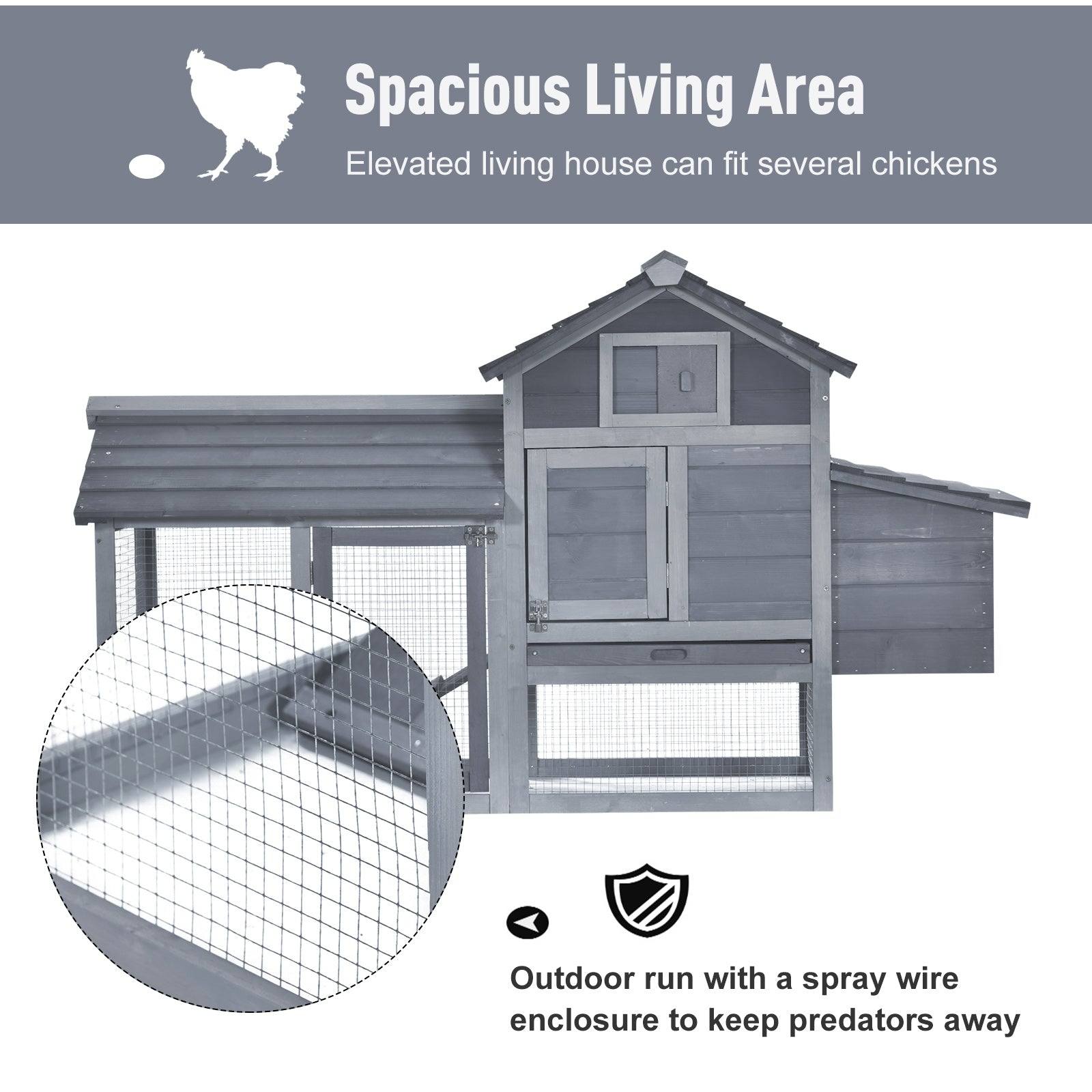 Treat your chickens to the good life they deserve with this chicken chateau from PawHut! Our deluxe chicken coops are both stylish and functional. This model includes both indoor and outdoor spaces for your chickens to enjoy while being protected from predators and the elements. Easily access the interior of this coop via liftable roof sections on the nesting box, or the lockable doors on the front of the house and run. Provide your hens with their very own poultry palace from PawHut!