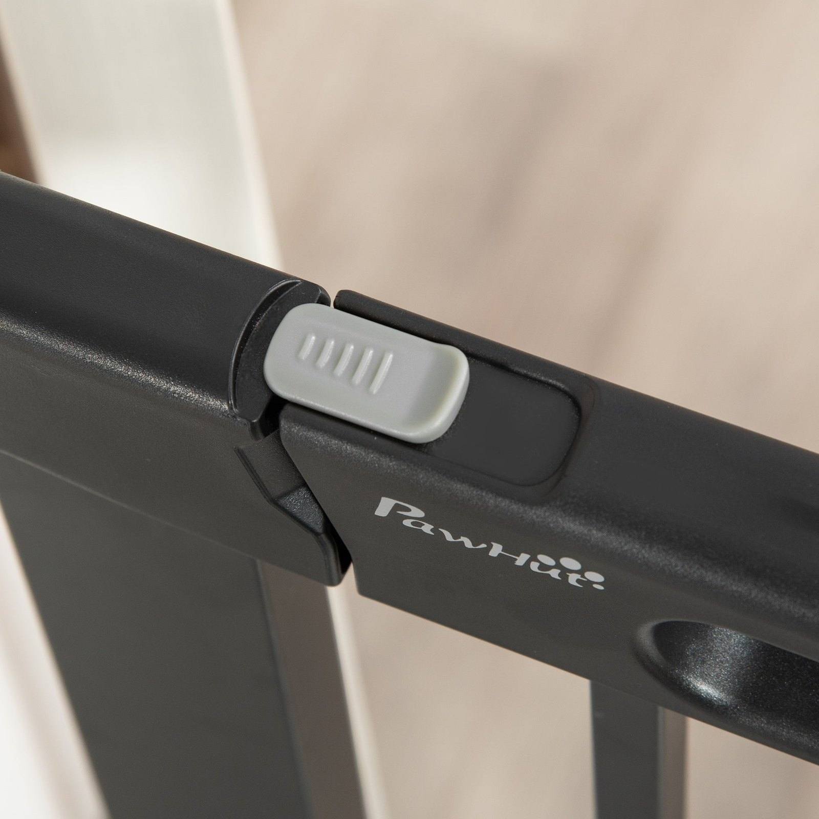 Keep pets away from rooms when required with this Pawhut pet stair gate. Made from sprayed steel with lead-free treated surface for strength and safety. Ranging from 75 cm to 82 cm wide, allowing it to fit into different sized spaces with ease. Slide and lift, the handle is easy to open, allowing you to pass through quickly without your pet escaping for security. Double locking mechanism ensures your pet secured in a place to provide the maximum safety.