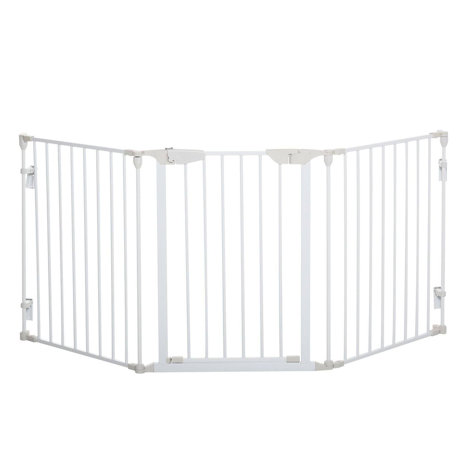 PawHut Pet Safety Gate 3-Panel Playpen Fireplace Christmas Tree Metal Fence Stair Barrier Room Divider with Walk Through Door Automatically Close Lock White