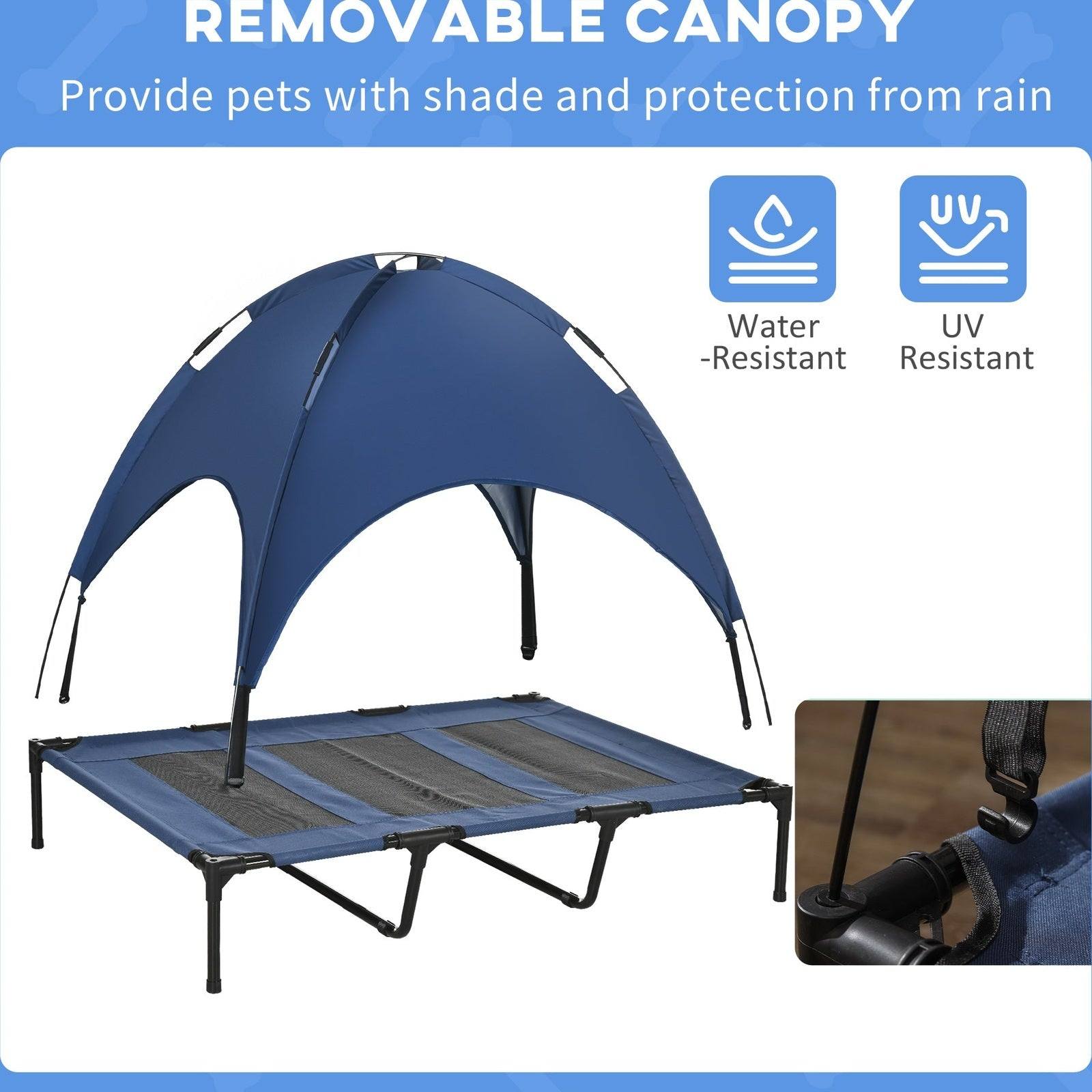 PawHut Raised Dog Bed Waterproof Elevated Pet Cot with Breathable Mesh UV Protection Canopy Blue