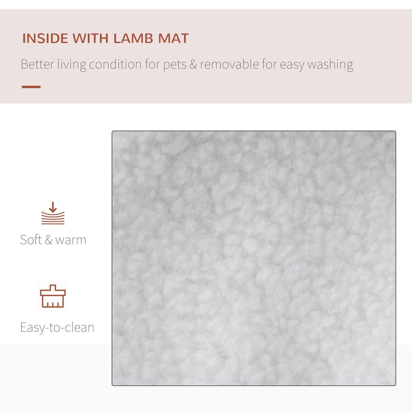 - Washable fleece pad and waterproof floor for easy cleanup.