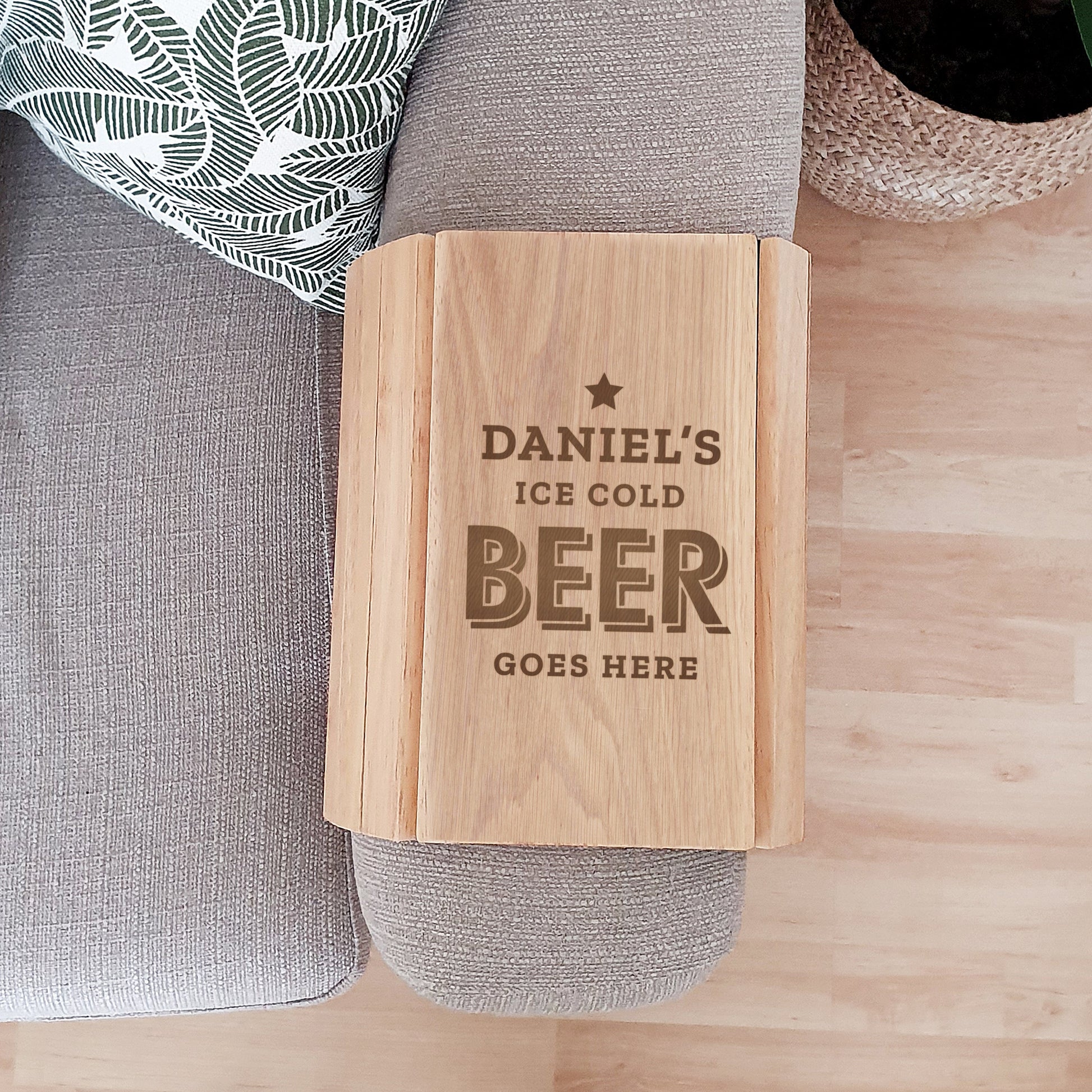 Customised for a Unique Touch: Personalise this sofa tray with a name of your choice, making it a thoughtful and practical gift for beer enthusiasts.