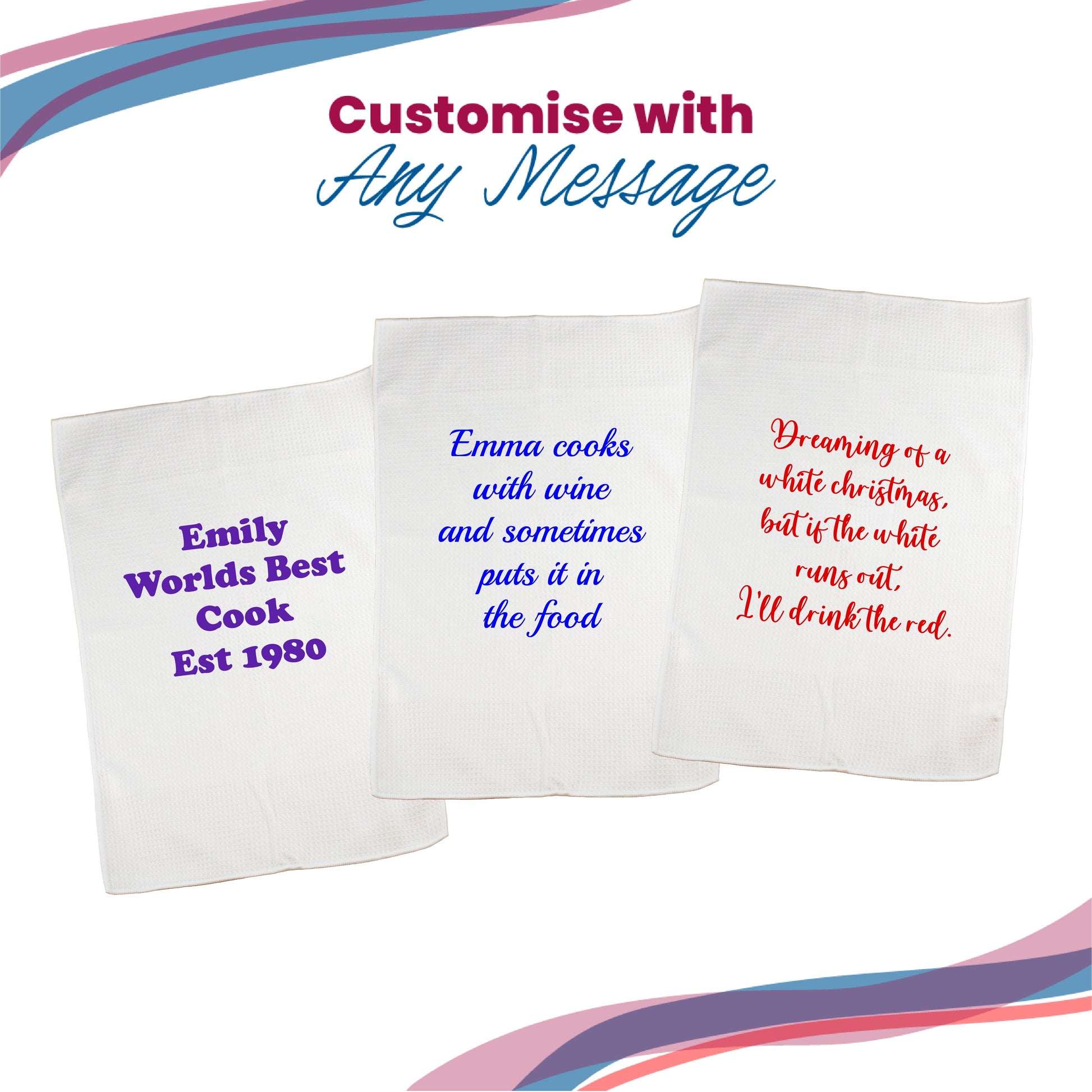 Printed Tea Towel, Any Message,Any Font, Any Colour, Microfibre, 40x60cm