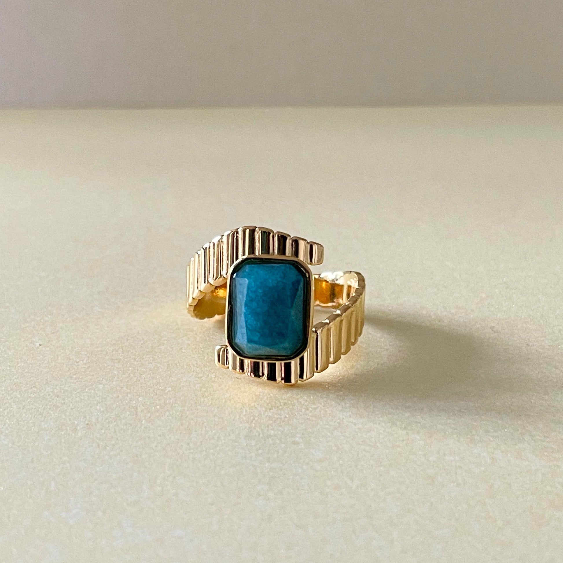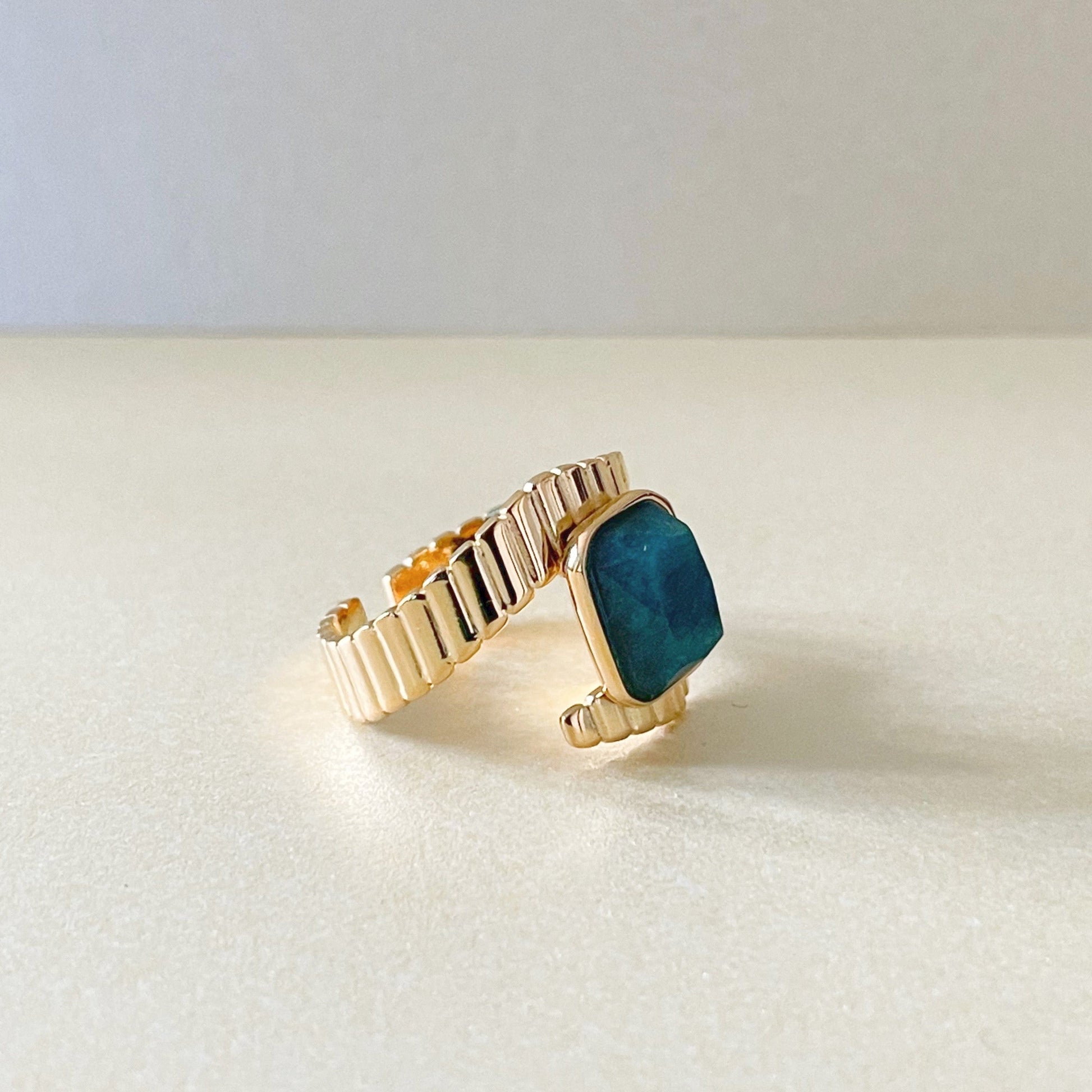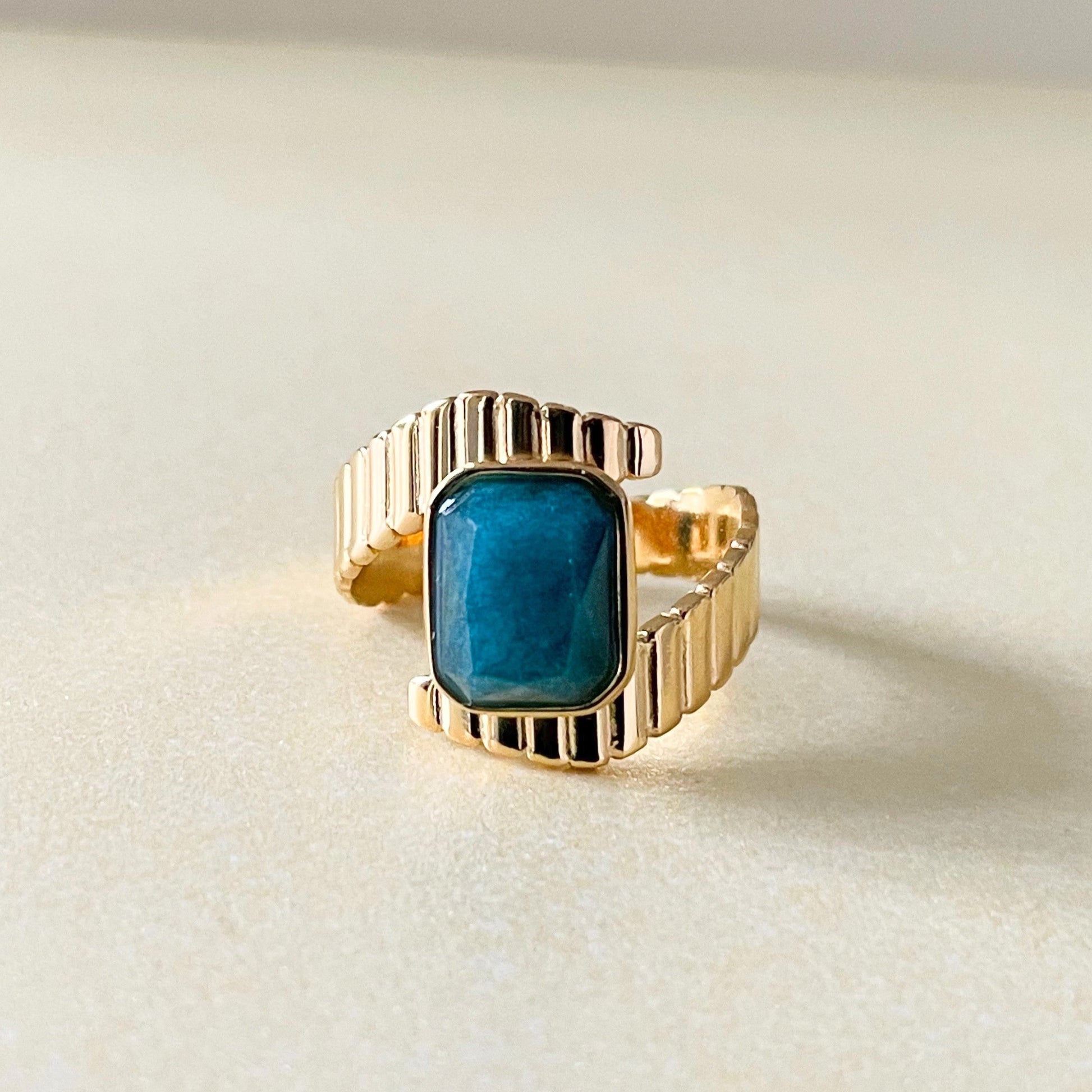 Riva Luxe 18k Gold Plated Apatite Stone Deco Ring