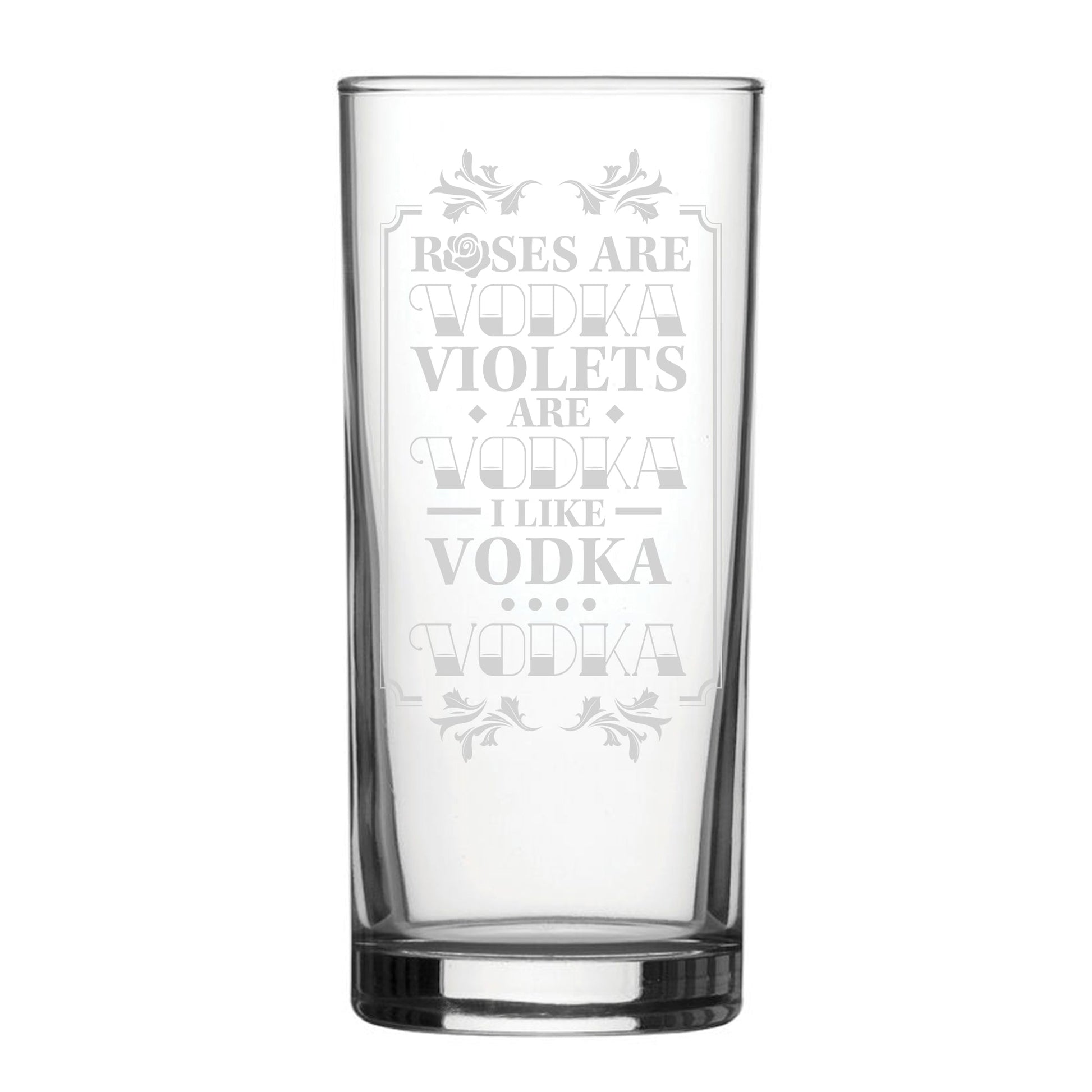 Roses Are Vodka, Violets Are Vodka, I Like Vodka, Vodka - Engraved Novelty Hiball Glass