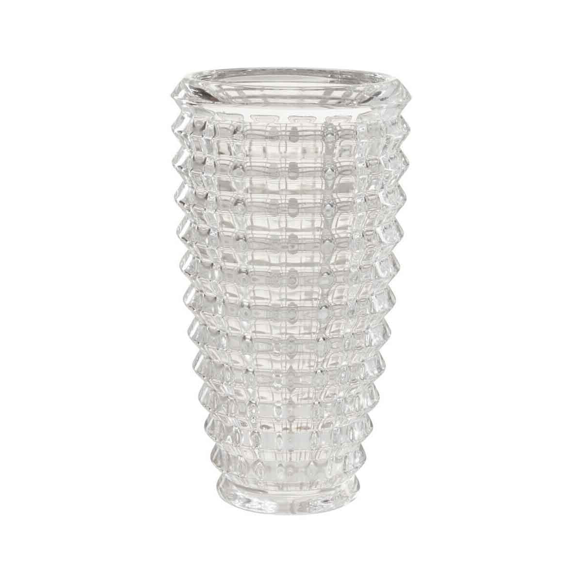 Crafted in tapered shape, this clear glass vase features a symmetric ridged pattern across exterior adding a bold texture on its front facade. Coupled up with a translucent effect, it will create an eye-catching appeal.