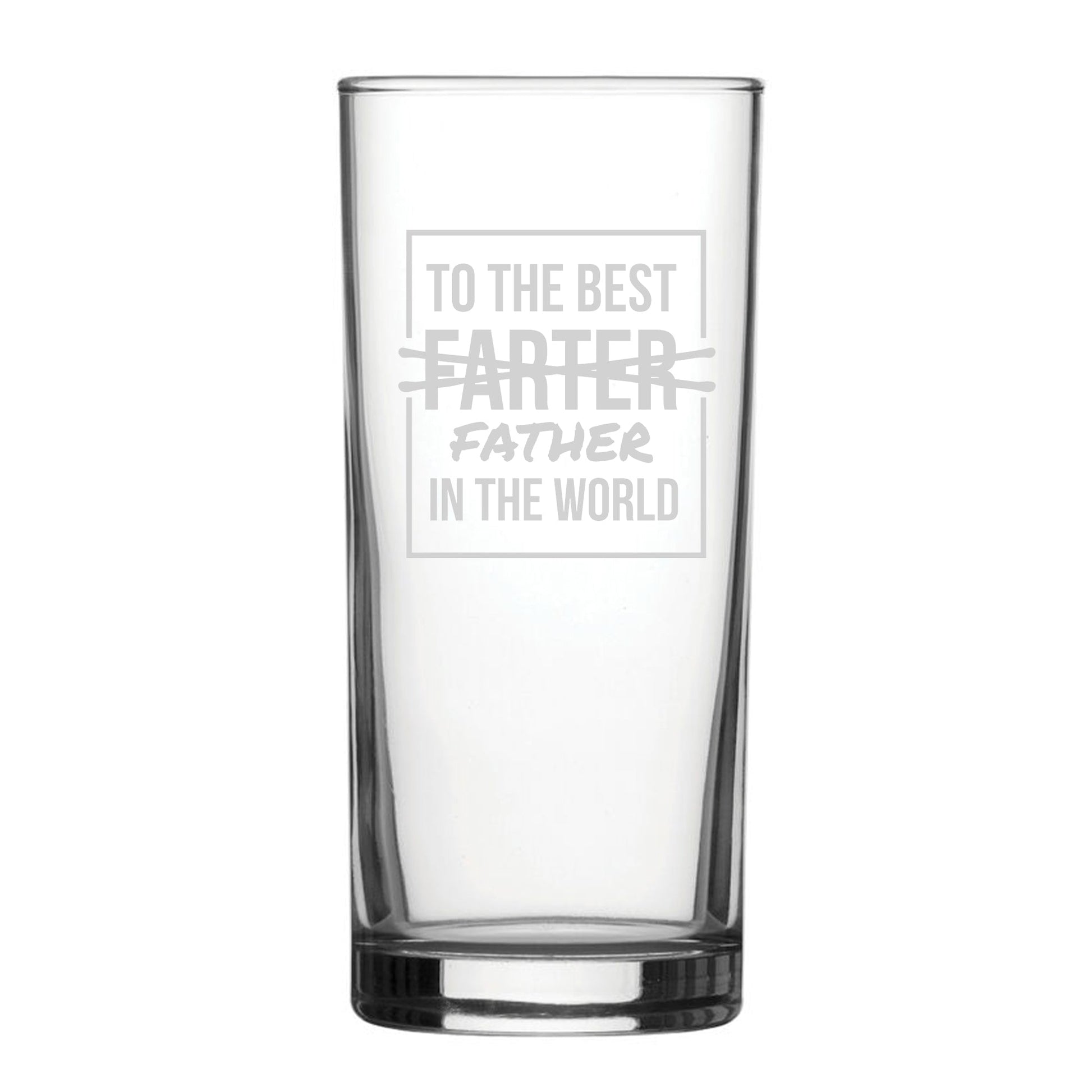 Let the world's best farter know they're the best father with our novelty hiball tumbler! Featuring a "To The Best Farter/Father In The World" design, this charming glass makes for the perfect gift. Engraved on a traditional straight sided hiball tumbler, this drinking vessel holds 340ml. By being engraved, the novelty design will be everlasting and won't wash away when cleaned with by hand or in the dishwasher. Partnered with a fantastic gift box, this glass makes the perfect gift for any event, such as birthdays, Christmas and retirements; ready to be gifted, this glass is eager to bring smiles and make for a memorable present.