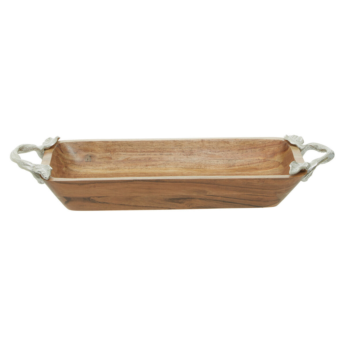 Boasting organic simplicity to the tabletop, this rectangular tray is skilfully handcrafted from acacia wood, which adds organic allure. Accessorised with aluminium handles on the opposing sides of the rim, this tray goes well with a variety of styles.
