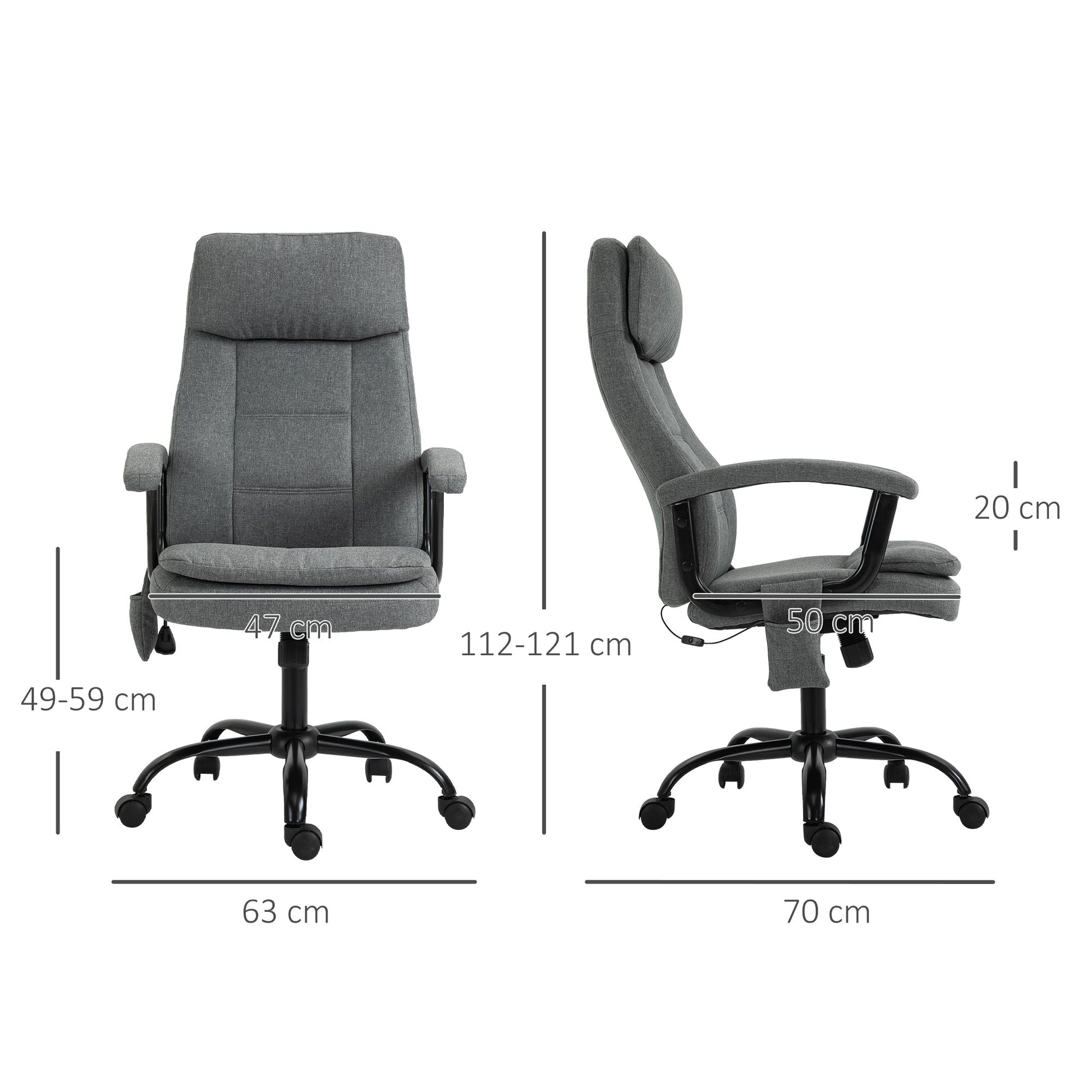 Vinsetto 2-Point Massage Office Chair Linen-Look Ergonomic Adjustable Height w/ 360° Swivel 5 Castor Wheels Rocking Comfortable Executive Seat Grey