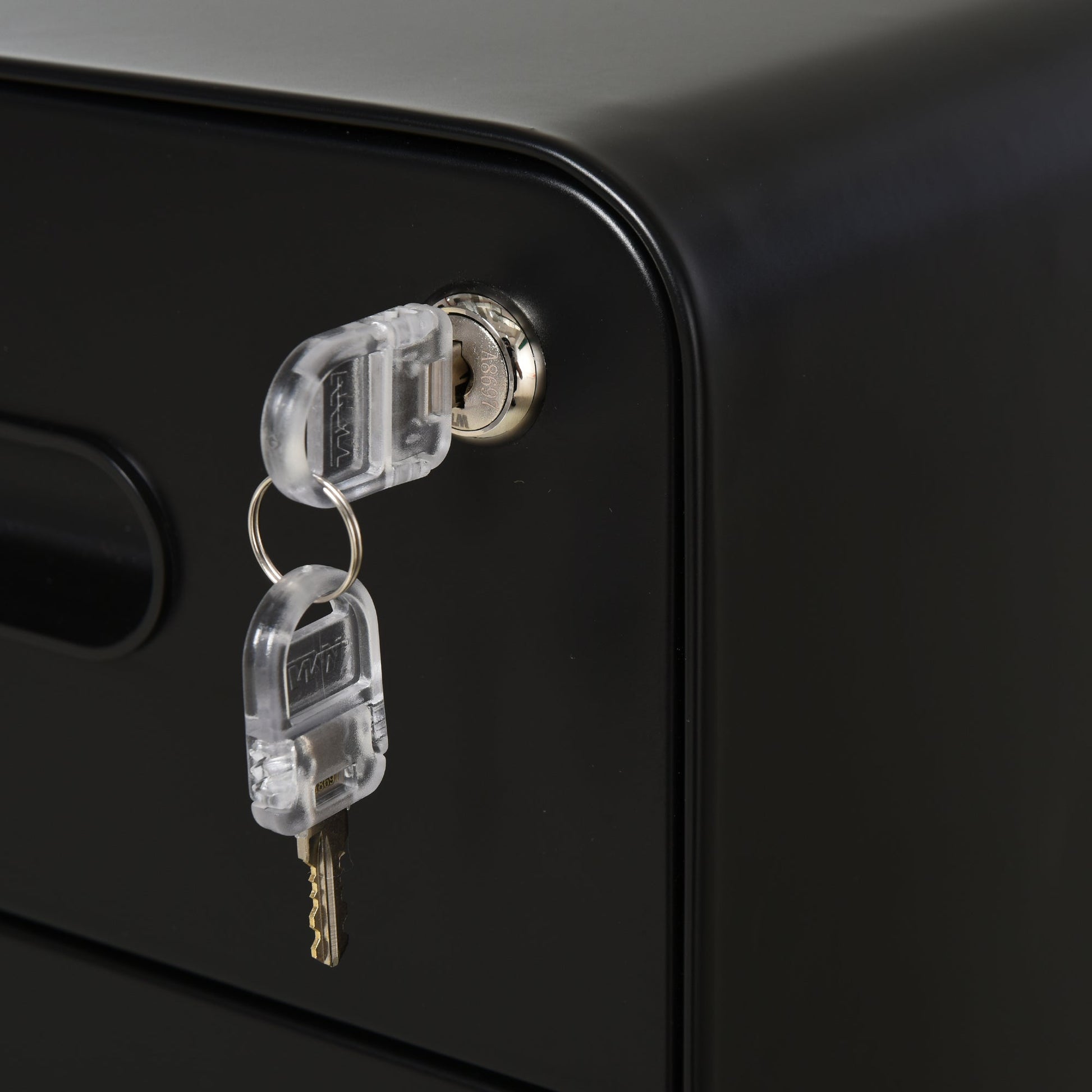 Ensure complete file organisation in modern style with this filing cabinet from Vinsetto. Spacious in storage, it features two small drawers and a large drawer- plenty of room for keeping everything important all in a place together. Made from durable and tough steel, its compact design features wheels for easy movement and it can be locked - keeping everything safe whilst away.
