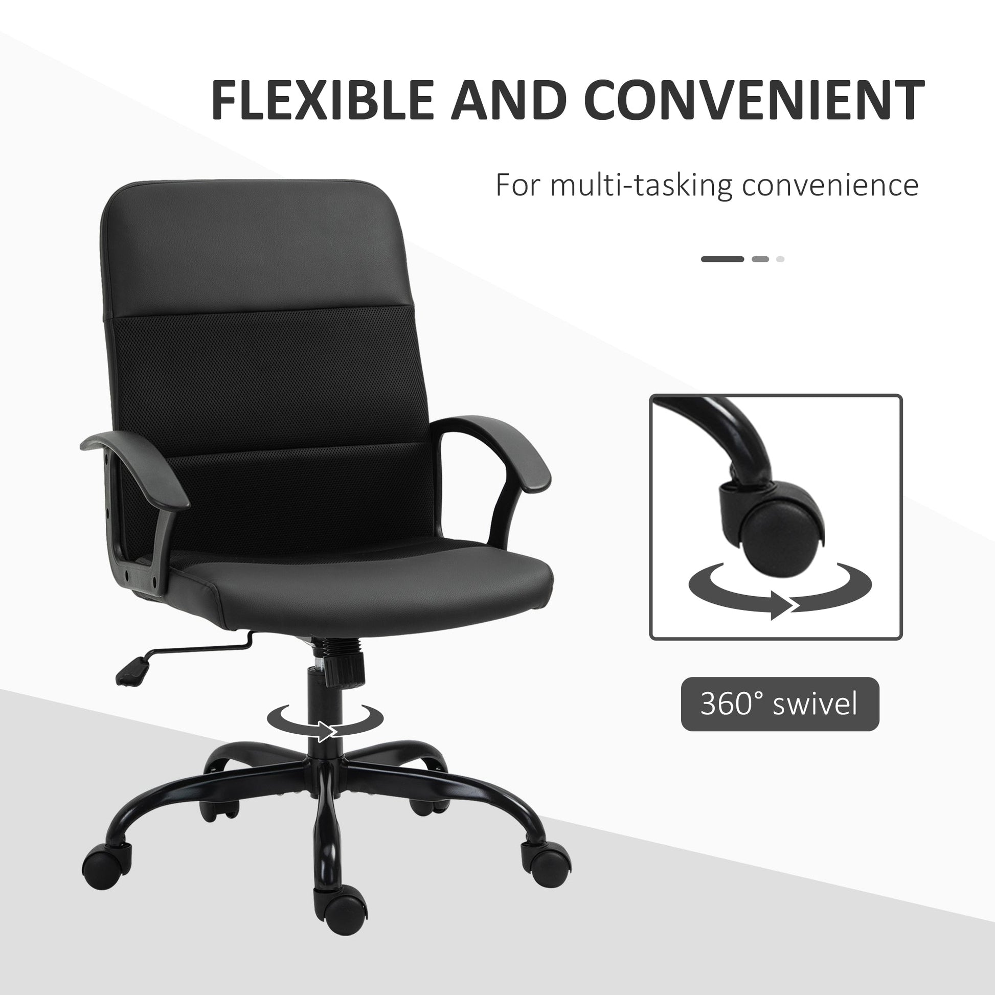 Vinsetto PVC Leather & Mesh Panel Blend Office Chair Swivel Seat w/ Padding Ergonomic Desk Adjustable Height Tilt 5 Wheels Stylish Black