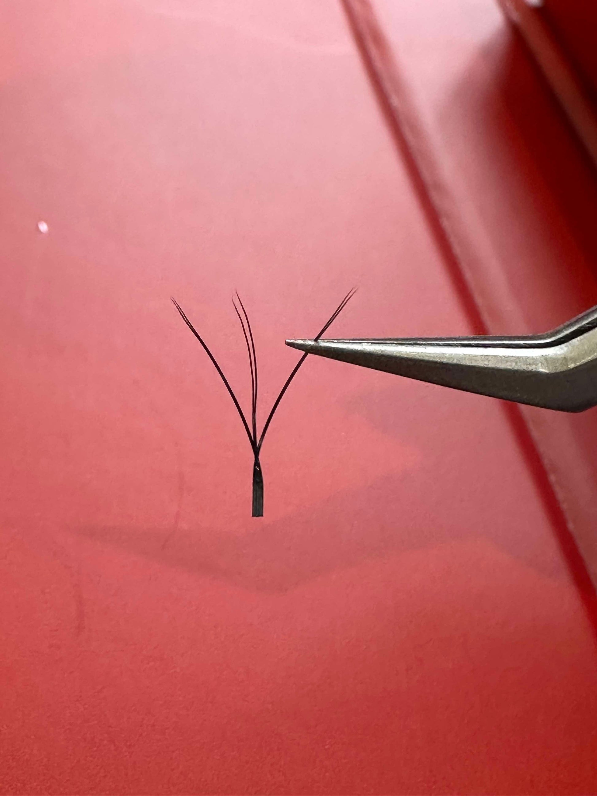 Each fan has 6 strands, starting with a long base that splits into three sections shaped like a “W.” This clever design creates a textured, voluminous effect that stands out compared to traditional lash fans.