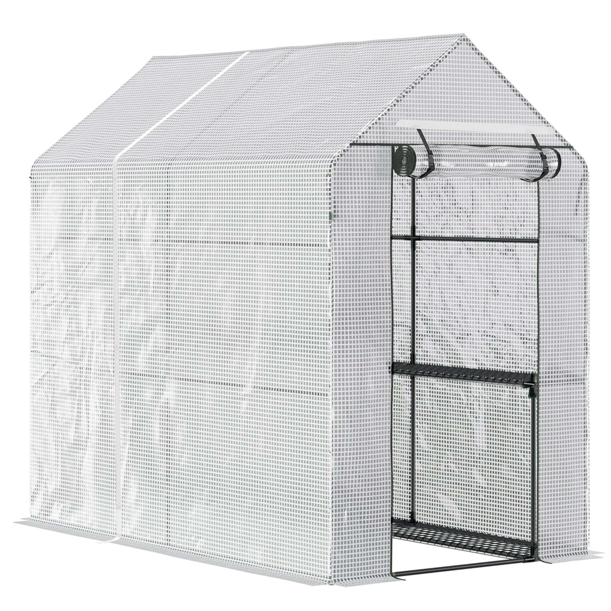 Looking for a way to grow crops all year round? Do it with this Outsunny walk-in greenhouse. Steel frame for a tough core, it's fitted with a PE plastic cover for shelter against the elements. The roll-up door ensures easy access. Inside, there are four wired panel for easy storage and organisation. Update your garden, grow plants and fall in love with your garden all over again.