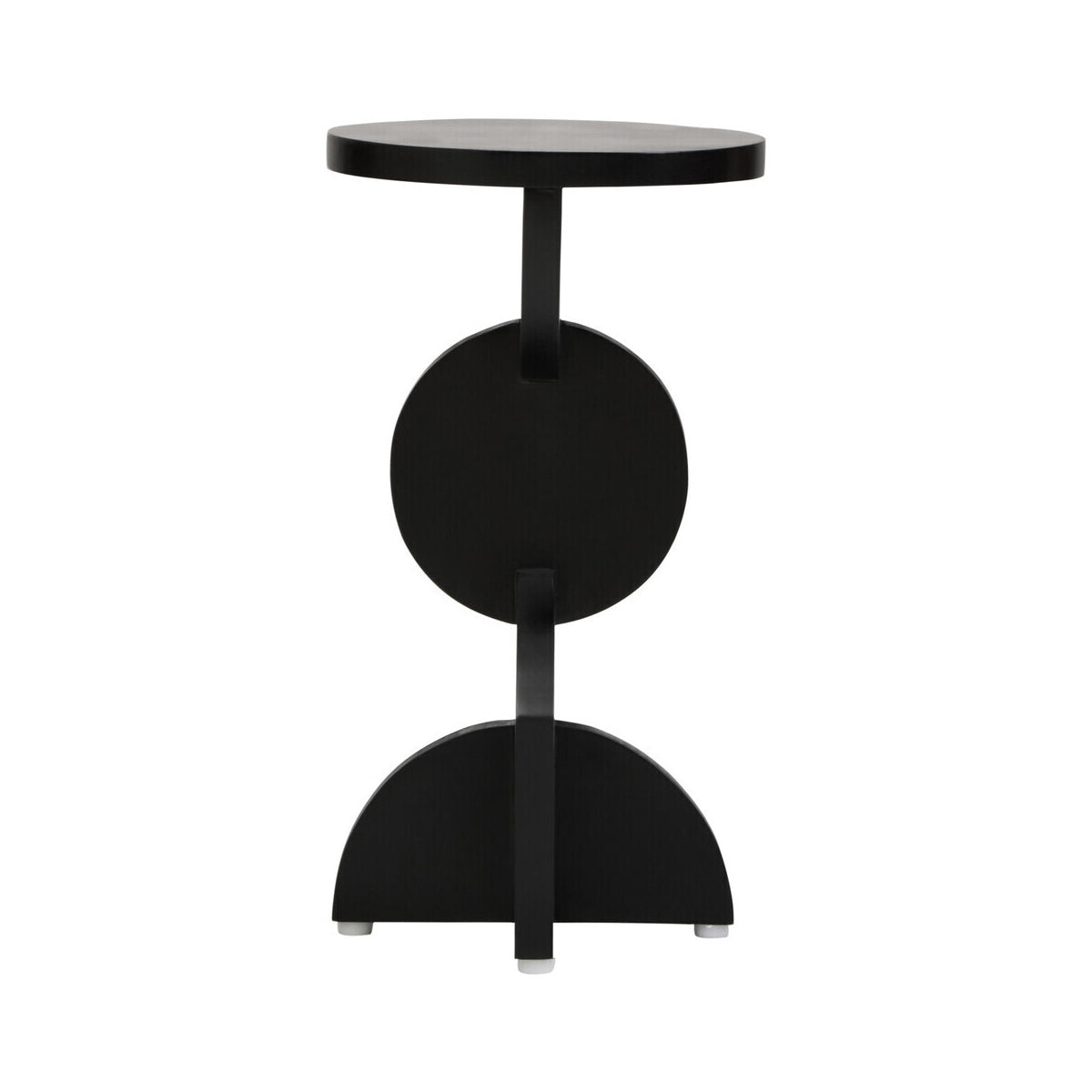 Crafted from mango wood, this side table features a round top supported by a sculpted base with a striking geometric aesthetic. The black finish enhances the natural grain and texture, making it a stylish addition to any modern space.