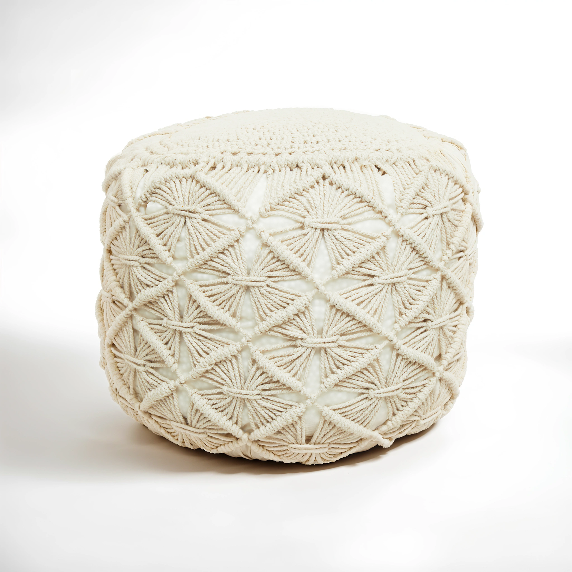 Weaved from natural cotton, this Bohemian style pouffe offers comfortable seating and a textured accent to your living room aesthetics. The natural colourway of this soft pouffe complements a wide range of interior settings and uplifts the overall aesthetics of the room. With tufted diamond detailing, this stylish pouffe can be used to add some organic flair to contemporary interiors.