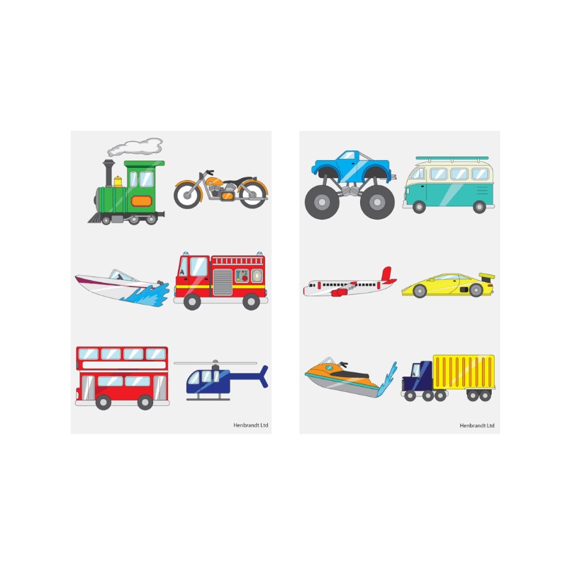 When you're looking for some kid-friendly fun, Wholesale Fun Mini Vehicles Tattoos - (CDU of 96) have got you covered! Bring imaginations to life with these colourful tattoos featuring all sorts of fun vehicles. Perfect for rewards or just to add a bit of fun to your day. Get your kids revved up with Fun Vehicles Tattoos! Let imaginations take the wheel as kids cruise around showing off their new ride. Whether they're at a party, zipping around the house, or cruising in the car, Fun Vehicles Tattoos will get kids fired up with creative, car-inspired fun!