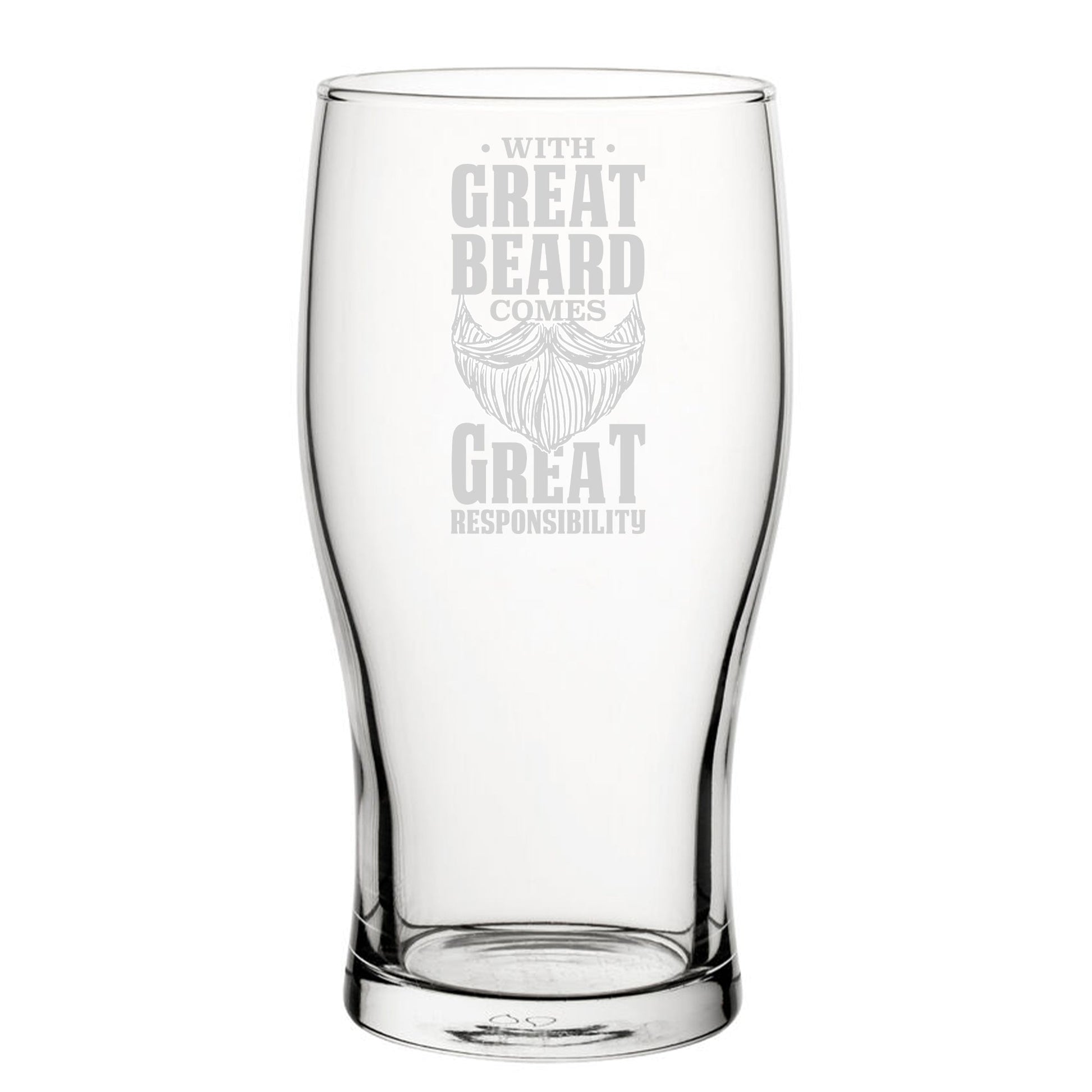 With Great Beard Comes Great Responsibility - Engraved Novelty Tulip Pint Glass