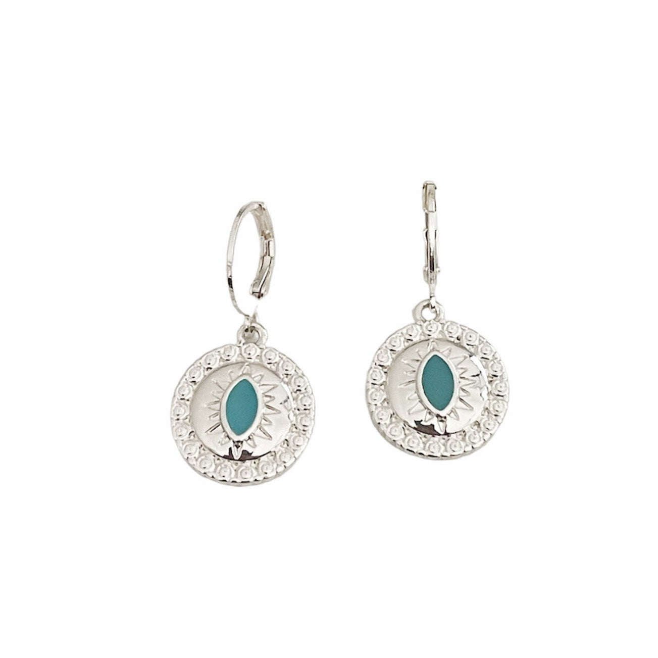 Yasmin Silver Lucky Evil Eye Charm Huggies