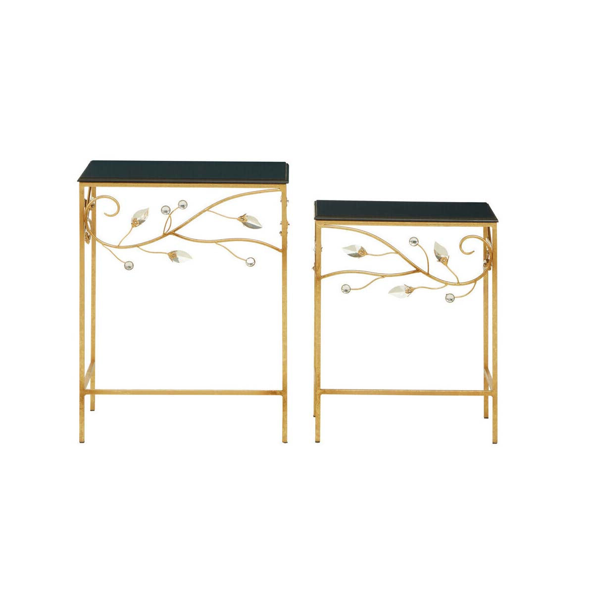 Yaxi Set Of 2 Tables With Black Wooden Top