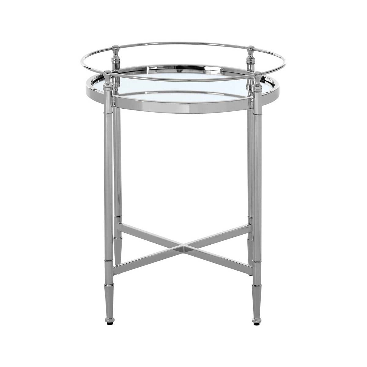 The table's elegant frame is created from stainless steel with a stylish silver finish. The unique frame extends above the tabletop creating a rail effect and adding distinction.